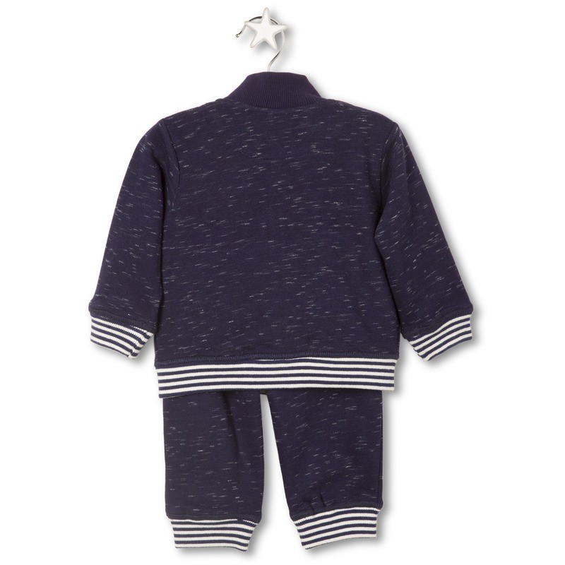 Chándal en felpa especial con bordados de la colección y canalés de rayas.