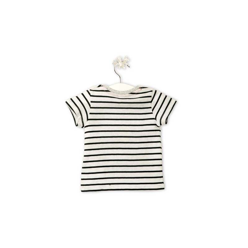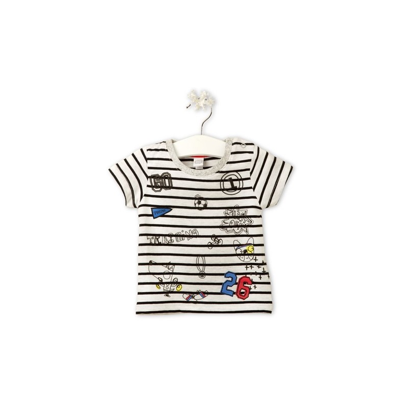 Camiseta manga corta listada con estampado de la colección.